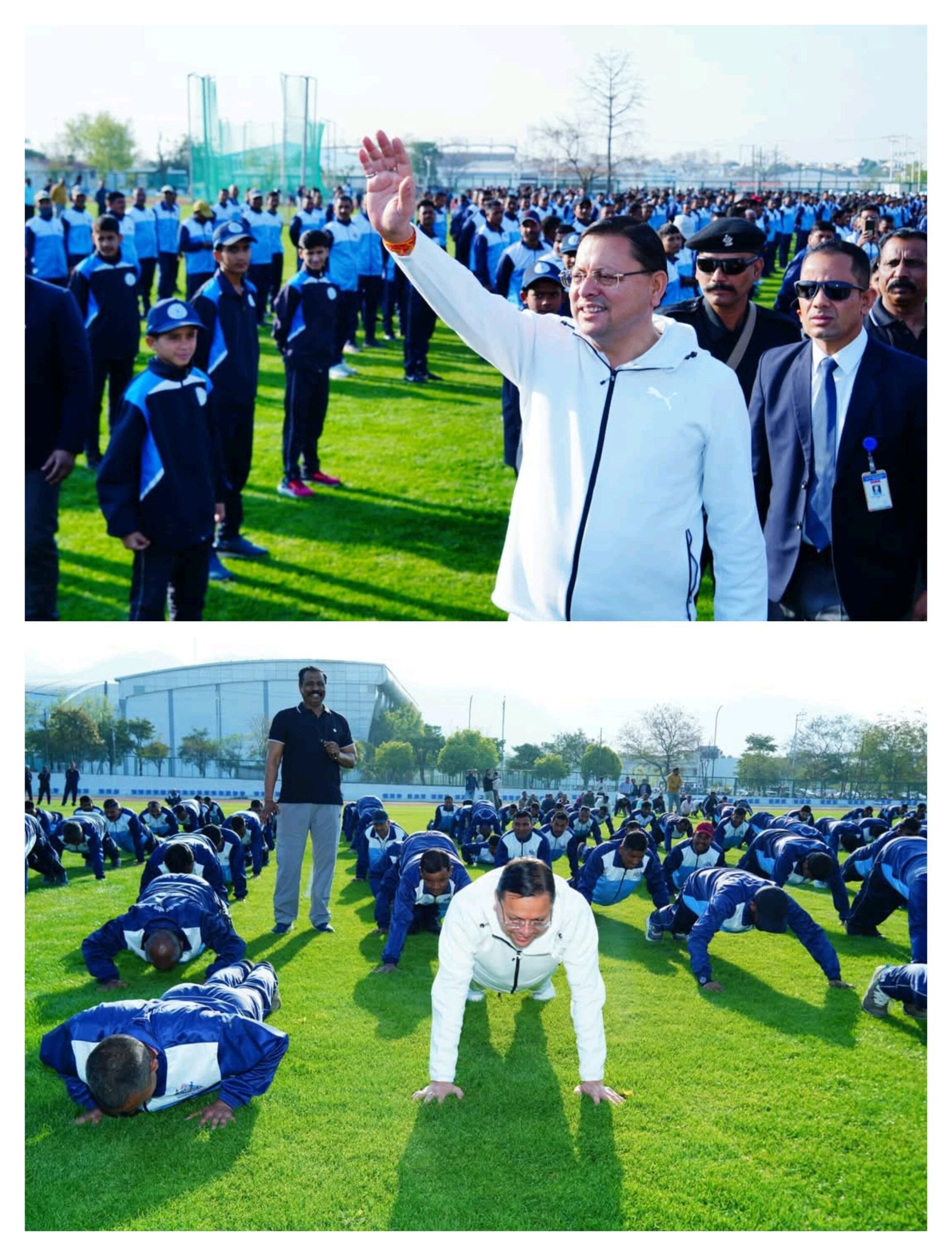 देहरादून- मुख्यमंत्री पुष्कर सिंह धामी ने रविवार को एथलैक्टिस ग्राउण्ड, महाराणा प्रताप स्पोर्ट्स कॉलेज, रायपुर, देहरादून में राज्य सरकार ( सेवा, सुशासन और विकास ) के 03 वर्ष पूर्ण होने के अवसर पर आयोजित कार्यक्रम में प्रतिभाग कर फिट इण्डिया रन का फ्लैग ऑफ किया।खिलाड़ियों के बीच पहुंचे मुख्यमंत्री ने पुश-अप्स लगाकर खिलाड़ियों का उत्साहवर्धन किया एवं उन्हें फिट रहने के लिए प्रेरित किया। मुख्यमंत्री ने खिलाड़ियों से मुलाकात कर, उन्हें फिट इंडिया की शपथ भी दिलवाई। मुख्यमंत्री ने उत्तराखंड युवा कल्याण विभाग के सहयोग से चलाए जा रहे ड्रोन कोर्स में सर्वश्रेष्ठ प्रदर्शन करने वाले युवाओं को ड्रोन भी वितरित किए।