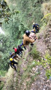 SDRF टीम भटवाड़ी द्वारा घटनास्थल पर पहुंचकर देखा गया कि हेलीकॉप्टर लगभग 200 से 250 मीटर गहरी खाई में गिरा हुआ है। टीम द्वारा घटनास्थल पर बेस बनाकर खाई में उतरने का रेस्क्यू कार्य प्रारंभ कर दिया गया है।