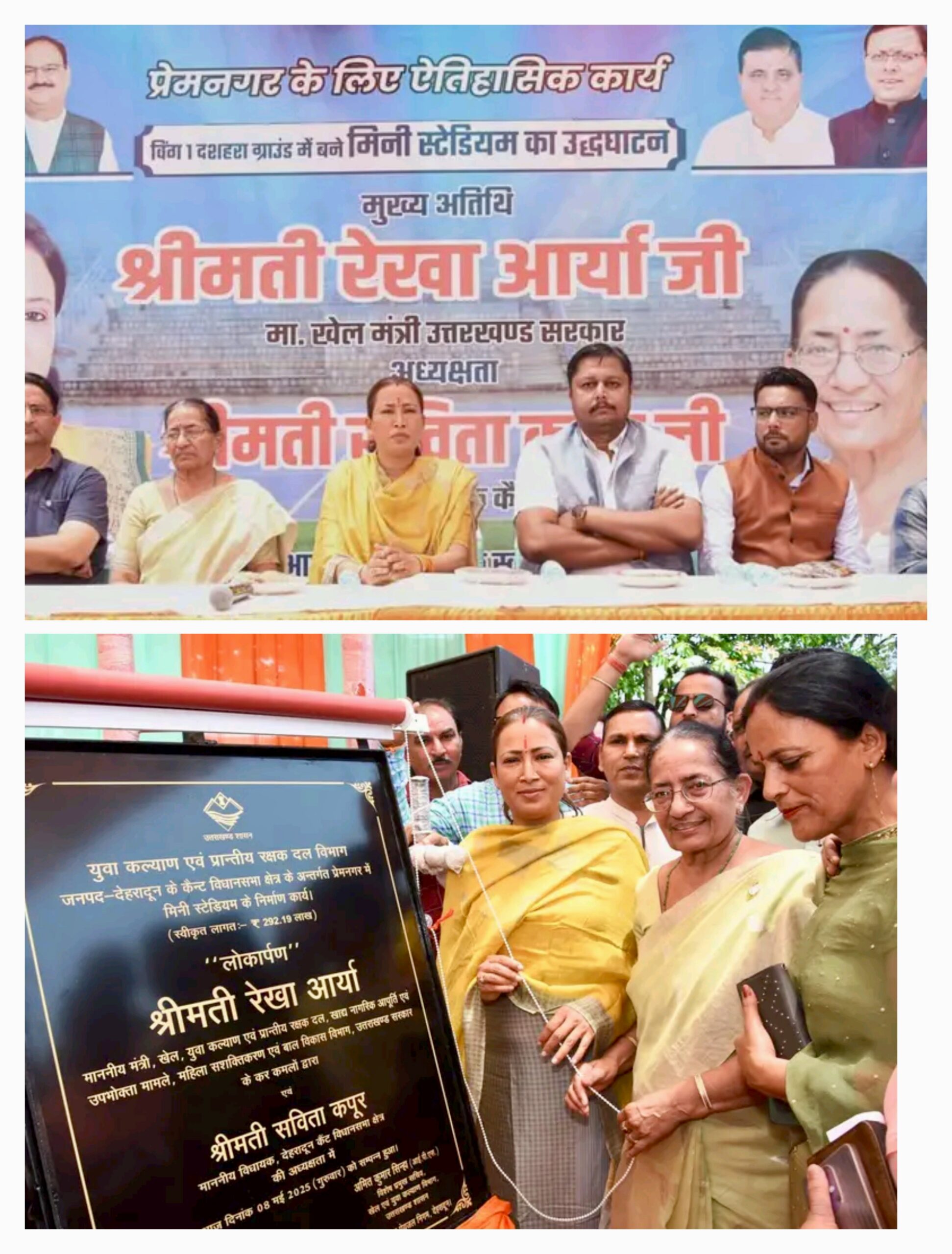 देहरादून- खेल मंत्री रेखा आर्या ने प्रेम नगर के दशहरा ग्राउंड में नवनिर्मित मिनी स्टेडियम का लोकार्पण किया। मिनी स्टेडियम के निर्माण में लगभग 292 लाख रुपए की लागत आई है।इस अवसर पर खेल मंत्री रेखा आर्या ने कहा कि पहले प्रदेश की जनता अपने प्रतिनिधियों से ज्यादातर सड़क, बिजली, पेयजल, अस्पताल और स्कूल आदि बनाए जाने की मांग करती थी।