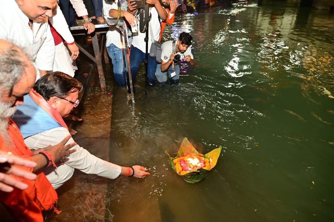 हरिद्वार: मुख्यमंत्री पुष्कर सिंह धामी ने सोमवार को हर की पैड़ी, हरिद्वार में आयोजित गंगा दीप महोत्सव कार्यक्रम में प्रतिभाग करते हुए मां गंगा की पूजा अर्चना एंव गंगा आरती में सम्मलित होकर प्रदेश की सुख समृद्धि एवं तरक्की की कामना की। इस दौरान हर की पैड़ी स्थित पुलिस चौकी का लोकार्पण भी मुख्यमंत्री द्वारा किया गया।