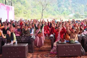 मंत्री गणेश जोशी ने अपने संबोधन में कहा, “आज महिलाओं को आगे बढ़ाने की आवश्यकता है।