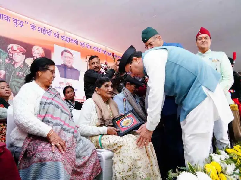 मुख्यमंत्री पुष्कर सिंह धामी ने कहा कि इस युद्ध में पाकिस्तान के लगभग एक लाख सैनिकों ने 16 दिसंबर 1971 को हमारी सेना के समक्ष आत्मसमर्पण किया, जो दुनिया के सैन्य इतिहास में एक अद्वितीय घटना के रूप में दर्ज है। उस युद्ध में लगभग 39 सौ भारतीय सैनिक वीरगति को प्राप्त हुए, जिनमें वीरभूमि उत्तराखंड के 255 बहादुर सपूत भी शामिल थे। तब हमारे प्रदेश के 74 सैनिकों को अपने अदम्य साहस और शौर्य के लिए विभिन्न वीरता पदकों से सम्मानित भी किया गया था।