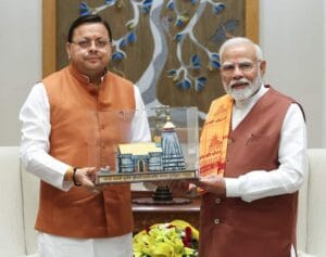 मुख्यमंत्री ने प्रधानमंत्री को केदारनाथ मंदिर की प्रतिकृति और बाबा केदारनाथ जी का प्रसाद भी भेंट किया।