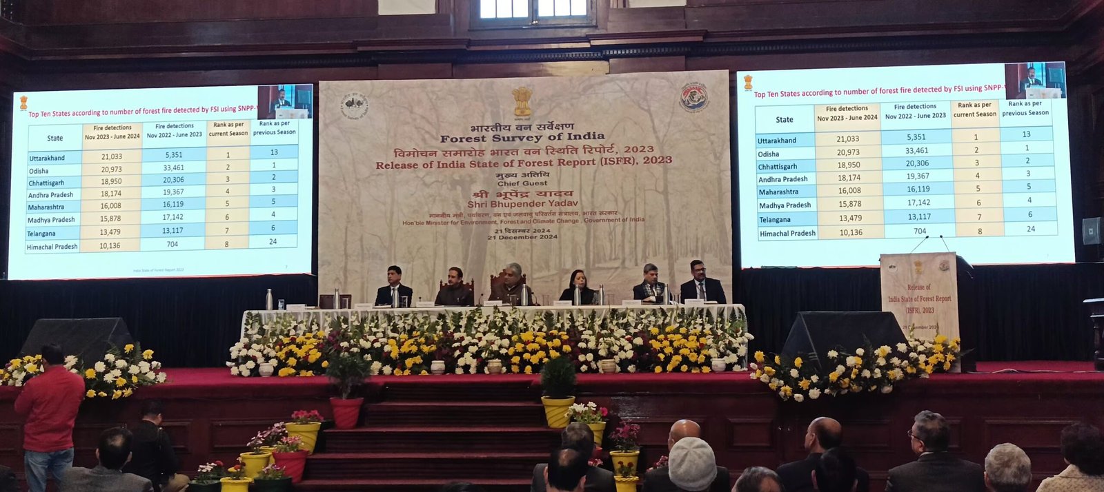 माननीय मंत्री ने इस बात पर प्रसन्नता व्यक्त की है कि 2021 की तुलना में देश के कुल वन और वृक्ष आवरण में 1445 वर्ग किलोमीटर की वृद्धि हुई है। उन्होंने उन्नत प्रौद्योगिकी का इस्तेमाल करके भा.व.स द्वारा प्रदान की जाने वाली नियर रियल टाइम अग्नि चेतावनी और वन अग्नि सेवाओं पर भी प्रकाश डाला।