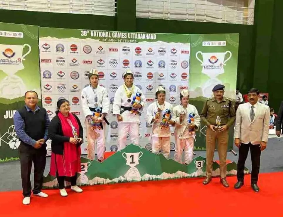 देहरादून: वर्तमान में उत्तराखण्ड राज्य में चल रहे 38 वे राष्ट्रीय खेलो में विभिन्न राज्यों से आये खिलाडियो द्वारा विभिन्न प्रतियोगिताओ में प्रतिभाग किया जा रहा है। राष्ट्रीय खेलो के दौरान आयोजित की जा रही जूडो प्रतियोगिता में महिला वर्ग (63 किग्रा) का फाइनल मुकाबला आज उत्तराखण्ड तथा मध्यप्रदेश के खिलाडियों के मध्य खेला गया, जिसमें उत्तराखण्ड राज्य की महिला जूडो खिलाडी उन्नति शर्मा द्वारा उत्कृष्ट प्रदर्शन करते हुए 63 किग्रा महिला वर्ग में स्वर्ण पदक हासिल किया गया, उन्नति शर्मा वन विभाग में उप निरीक्षक के पद पर नियुक्त है ,उक्त वर्ग में मध्यप्रदेश की हिमांशी टोकस को रजत पदक तथा मणीपुर की ईरेंगबम कल्पना देवी तथा जम्मू कश्मीर की तलहा फययाज को कांस्य पदक प्राप्त हुआ।