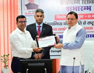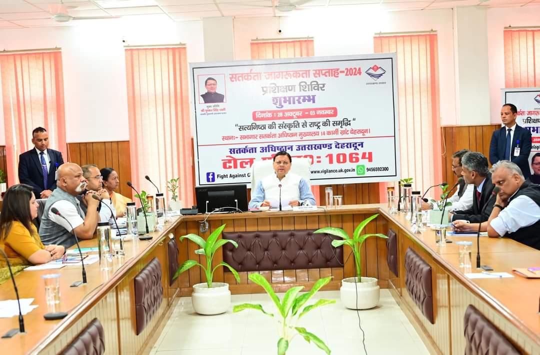 देहरादून- मुख्यमंत्री पुष्कर सिंह धामी ने सतर्कता अधिष्ठान निदेशालय द्वारा ‘सत्यनिष्ठा की संस्कृति से राष्ट्र की समृद्धि’ पर आयोजित सतर्कता जागरूकता सप्ताह एवं प्रशिक्षण शिविर का शुभारंभ किया।इस अवसर पर उन्होंने घोषणा की कि सतर्कता विभाग की कार्यप्रणाली को और अधिक प्रभावी बनाने के उद्देश्य से सर्विलांस, तकनीकी एवं वित्तीय विशेषज्ञों की एक टीम गठित की जाएगी। इस अवसर पर मुख्यमंत्री ने सतर्कता अधिष्ठान में सराहनीय कार्य करने वाले कार्मिकों को प्रशस्ति पत्र देकर सम्मानित भी किया।