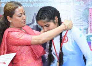 देहरादून- खेल मंत्री रेखा आर्या ने बीएस नेगी महिला पॉलिटेक्निक ओएनजीसी में आयोजित 11वें दून योग महोत्सव में प्रतियोगिताओं के विजेता बच्चों को सम्मानित किया। यह आयोजन दून योगपीठ द्वारा किया गया था।इस अवसर पर कैबिनेट मंत्री रेखा आर्या ने कहा कि योग हमारे जीवन में किस तरह गहराई से निहित है, पहले हमारे देश के ज्यादातर लोग खुद भी इससे परिचित नहीं थे। लेकिन प्रधानमंत्री नरेंद्र मोदी ने विश्व भर में योग की ऐसी अलख जगाई है कि अब अंतर्राष्ट्रीय योग दिवस पर डेढ़ सौ से ज्यादा देशों में इसे उत्सव की तरह मनाया जाता है।